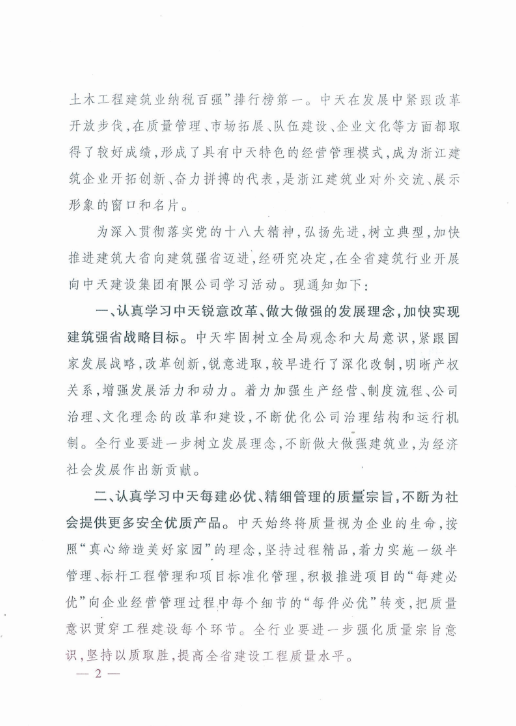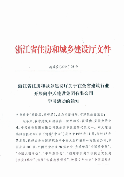 《浙江省住房和城乡建设厅关于在全省建筑行业开展向PA尊龙凯时建设集团有限公司学习活动的通知》